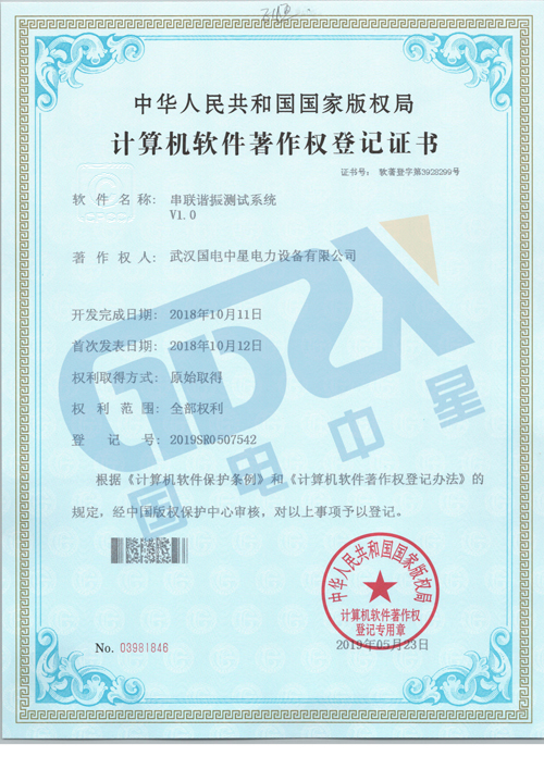 喜訊:國電中星獲得多項計算機軟件著作權登記證書金秋十月,歡度國慶,喜迎軍運會,是舉國歡慶的好時節(jié)。國電中星作為電力行業(yè)的一員在電力行業(yè)建設中不斷努力著。近日,國電中星自主研發(fā)的“串聯(lián)諧振測試系統(tǒng)V1.0”、“直流電阻測試儀軟V1.0”、“二次保護測試系統(tǒng)V1.0”等軟件獲得了《計算機軟件著作權登記證書》。詳情如下。