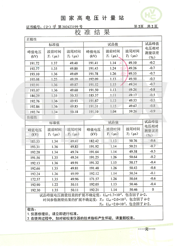 2、沖擊電壓發(fā)生器回路電感小,并采取帶阻濾波措施,在大電容負載下仍能產生標準沖擊波,負載能力大。