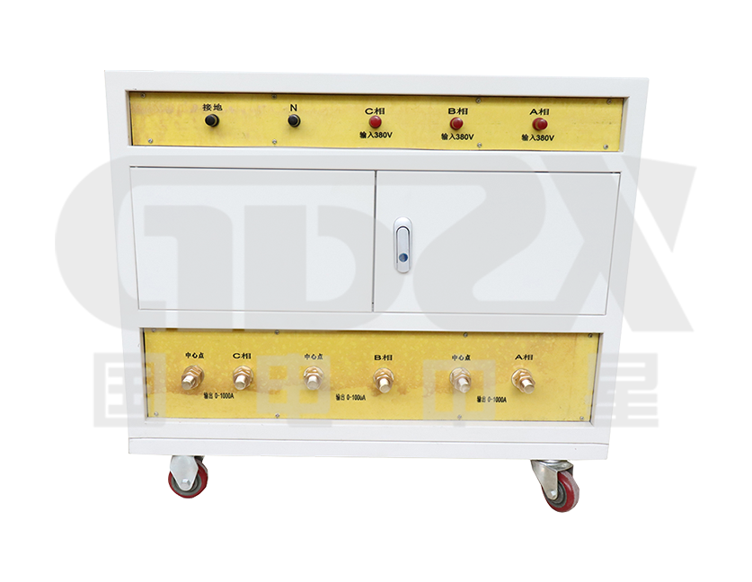 輸出電流 | AC0~1000A三相輸出無級(jí)可調(diào)、面板帶數(shù)顯電流表 |