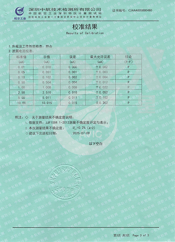 5. 漏電電流精度:1級