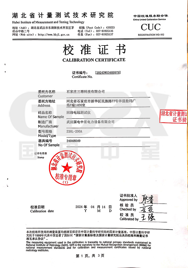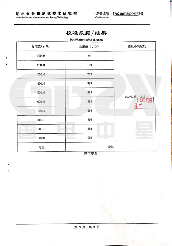 ● 采用國家標準推薦直流200A直接測得回路電阻。