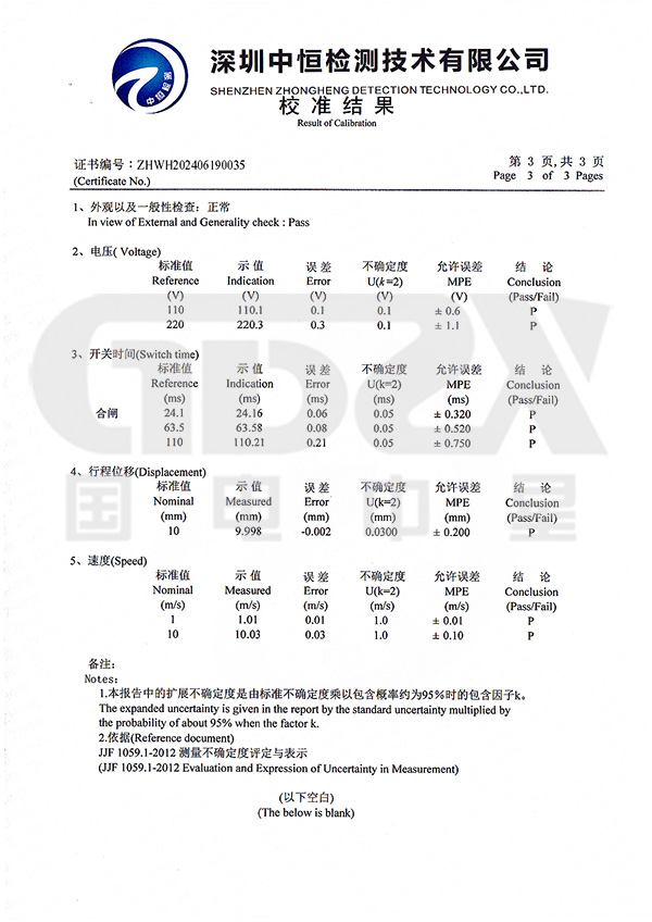 3/6路固有分閘(合閘)時(shí)間